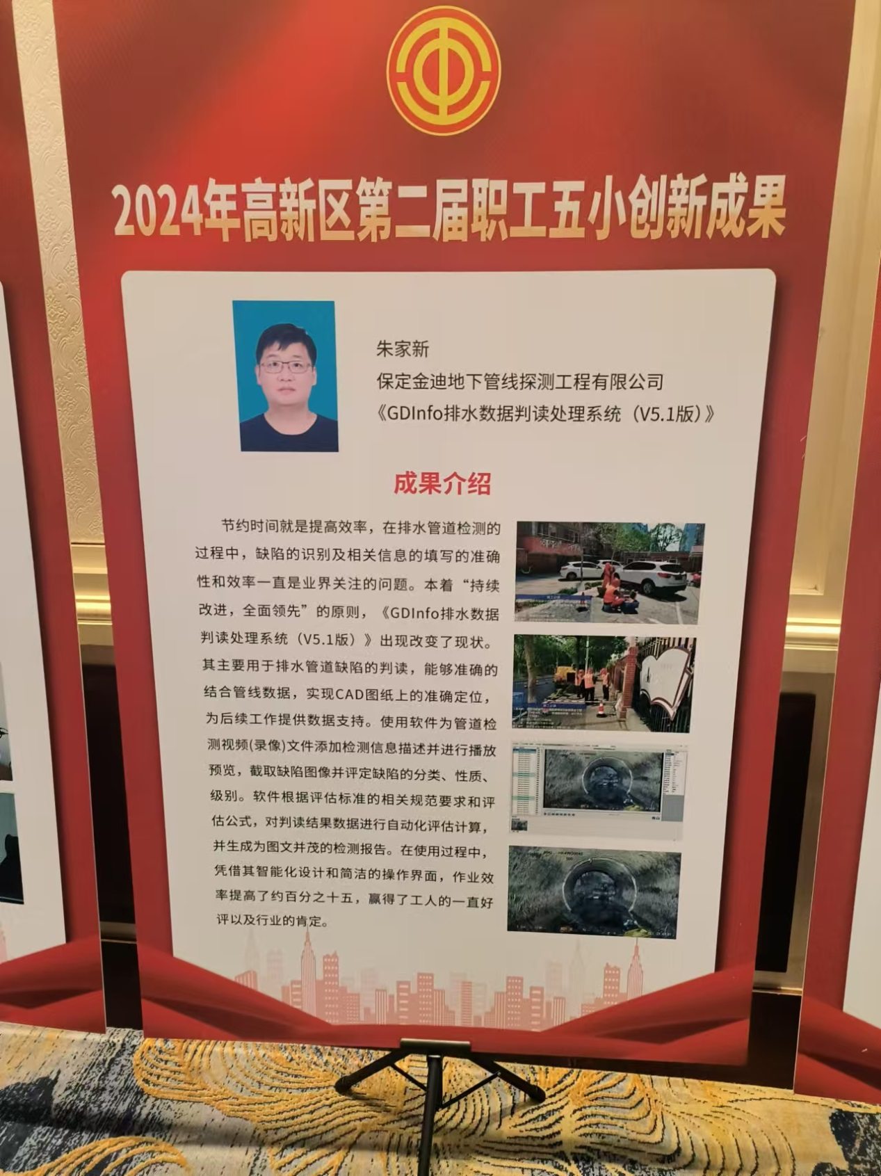 金迪公司排水事业部部门经理朱家新在这届经济技术创新评比活动中获得优秀奖。