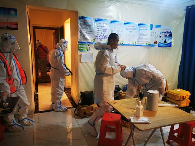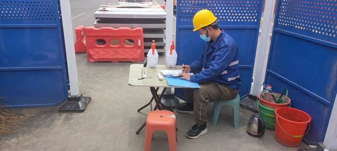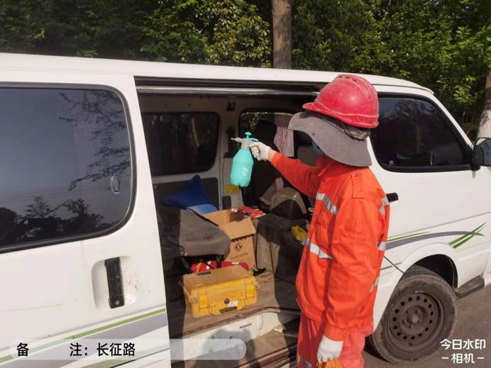 项目规定,每天对驻地及外业车辆进行消杀,对人员体温检测。按业主要求进行核酸检测。三餐在项目就餐,取消早中在外面吃饭。由于县城封城,无法去开发区进行清罐,马上启动县城倾倒点,确保项目正常运行开展工作。