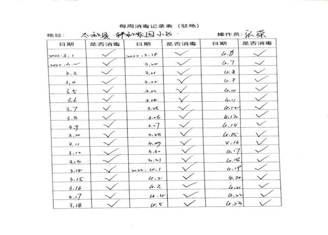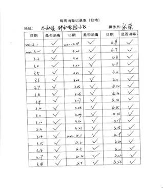 太和项目部防疫措施及规定:储备药品、防护用品、消毒用品做好每日消耗清单,组织人员大扫除,保持宿舍空气流通。每日内业及后勤人员对大厅、楼道、楼梯、卫生间等公共区域进行消毒通风,保持环境干净清洁。外业专人配备体温计,施工现场全部人员佩戴医用一次性口罩,全部外业施工人员每天两次以上体温测量并记录。每个外业班组配备喷壶及84消毒液,专人对施工车辆及施工物品进行两次以上消杀并记录。