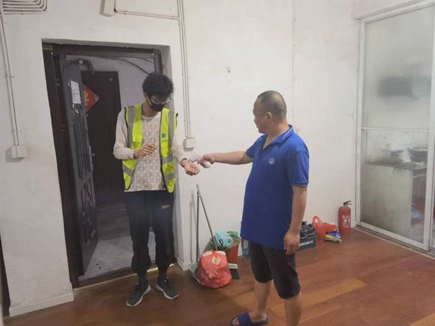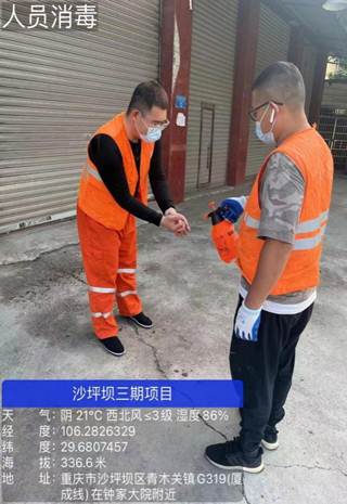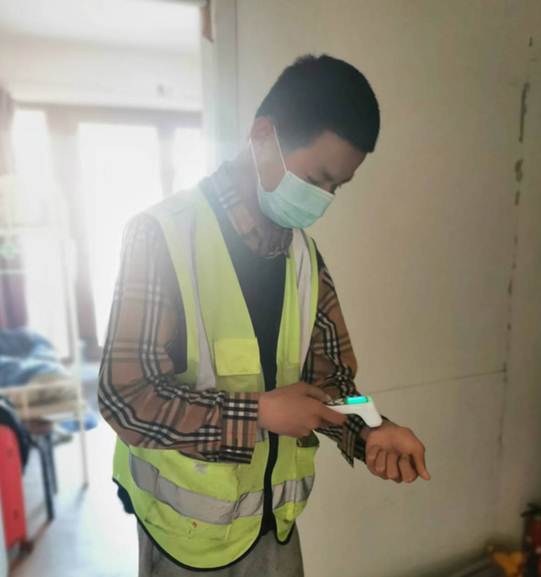 ①王鹏:负责对项目部进行每日消毒以及对工人进行体温测量和登记