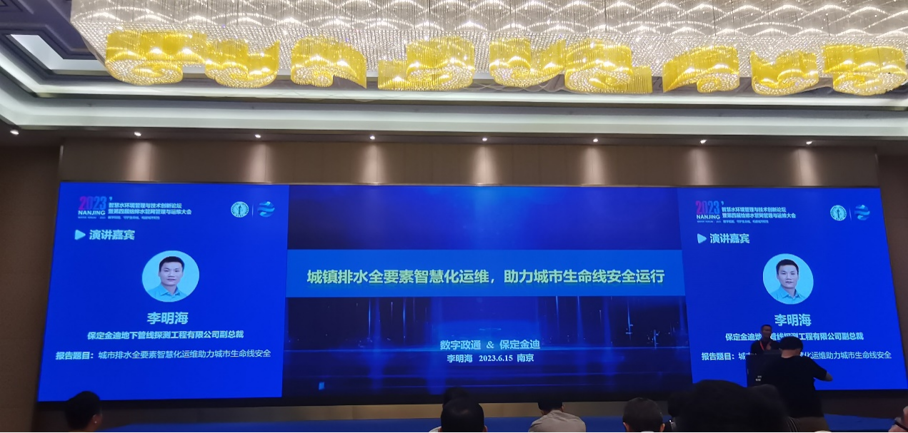 金迪企业集团作为智慧排水一体化解决方案供应商受邀出席,与各参会代表共话章程、研讨交流,共同推进排水管网管理与运维技术能力提升。公司副总裁李明海作为公司代表出席本次大会,并做题为“城镇排水全要素智慧化运维,助力城市生命线安全运行”的专题演讲。