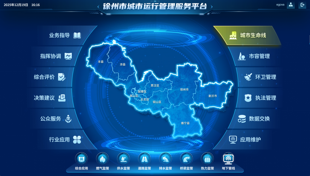 近年来,数字政通的服务已延伸至邳州、新沂、丰县等徐州下辖县市,承担了城市运管服、运管服与生命线融合、综合执法、数字城管等项目建设,为徐州市实现“省市县一体化”全域推进生命线工程提供了有力的技术协同保障。